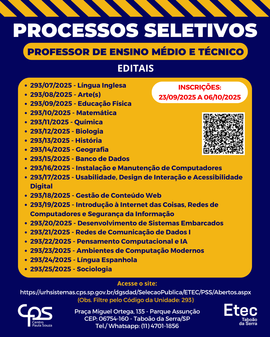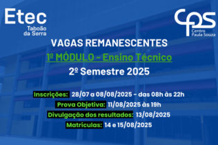 Vagas Remanescentes – 2º Semestre de 2025 – 1º Módulo – Ensino Técnico